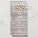 Menu rustique élégant avec un arrière - plan en bois rustique gris clair, lumières à corde, trois jarres en mason rose rose rose avec burlap enveloppé autour d'eux, vous et vos partenaires paraphes imprimés sur les jarres à confiture et une formulation blanche tendance.