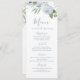 Menu Jardin romantique mariage floral bleu poussiéreux