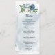 belles fleurs bleues et blanches et menu mariage romantique feuille vert.