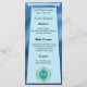 Un menu élégant avec un motif turquoise bleu et feuille et votre numéro d'anniversaire unique en parties scintillant et or.