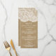 La collection Kraft & dentelle est un design époustouflant qui présente un bel arrière - plan rustique à effet papier Kraft avec un habillage vintage romantique en dentelle blanche. Ces cartes de menu peuvent être personnalisées pour votre occasion spéciale et feraient le modèle parfait pour tout mariage rustique, douche nuptiale, fête de fiançailles, fête d'anniversaire et bien plus encore. *Veuillez noter que Zazzle ne vend que des cartes de menu imprimées, de sorte que ces cartes de menu n'ont pas de véritables dentelles.