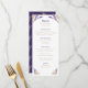 Rien ne dit romance comme la lavande, et sur ce menu mariage de automne, les fleurs délicates font un cadre doux pour le texte. Le blé est associé à la lavande pour ajouter une touche rustique au design. Une police sans serif est utilisée pour les titres pour la simplicité moderne. Sur le dos, un arrière - plan violet foncé contraste avec un front blanc. Un motif de blé et de lavande orne également l'arrière. Célébrez votre mariage de automne romantique avec ce menu lilas rustique.