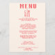 Un menu coloré rétro et moderne, rouge et blanc mariage pour le dîner. Ce qui présente un design modèle chic de crémeux laiteux arrière - plan et rouge vif typographie écrite à la main. Avec couteau tiré à la main, fourchette et cuillère. Un Parfait et assorti à toute la suite.