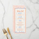 Menu tendance de style italien, facile à personnaliser. Avec typographie éclair et détails d'éléments dessinés à la main. Sur un arrière - plan en vichy orange aux détails bleus.