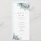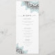 Un mandala en dentelle dans un dégradé de bleu oeuf de robin doux et gris chaud ainsi que le texte du script courant donnent à cette suite de mariage élégant son charme luxueux. Le menu mariage avec des mandalas d'angle en bleu doux, rouge à oeuf, permet de modifier facilement les détails de votre menu de réception en utilisant le modèle fourni. Cherchez ID968 pour voir toutes les pièces correspondantes dans ce bel ensemble de mariages.