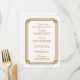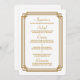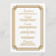 Ces cartes de menu sont décorées dans des tons blanc et or, avec un cadre géométrique et d'autres détails stylistiques, inspirés de l'Art Déco et des années folles. Vous pouvez customiser les champs de texte d'exemple à votre convenance.
