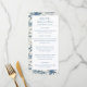 Ces cartes de menu côtier et moderne mariage ou cartes de menu de répétition présentent un élégant design de texte bleu qui respire un style nautique avec des voiliers dessinés à la main et des palmiers. Ajoutez vos noms ou votre monogramme pour les rendre entièrement vôtres.