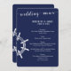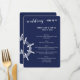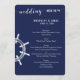 Cartes de menu mariage bleu marine ronde personnalisées avec roue blanche et texte personnalisable