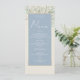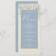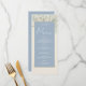Vous apprécierez ce menu de mariage élégant, qui présente un design floral bleu poussiéreux et chic, agrémenté de fleurs sauvages rustiques et d'accents dorés. L'esthétique d'inspiration vintage apporte une touche de charme boho, mêlant parfaitement sophistication et beauté naturelle.