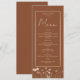 Notre élégant menu de mariage chic et moderne présente un design en terre cuite floral boho avec des fleurs sauvages aquarelles rustiques et des accents dorés. Ce menu époustouflant mélange sans couture le style contemporain avec une touche bohème, offrant une touche sophistiquée qui complète parfaitement l'esthétique de votre journée spéciale. Offre spéciale jusqu'au 15/01/2025 : achetez ce produit, envoyez-moi un e-mail à bpkolman@gmail.com avec votre prochain choix, et bénéficiez d'une remise exclusive !