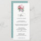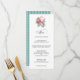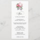 Choix de cartes de menu mariages, ce design présente la fleur rose exotique King Protea dans un agencement aquarelle aux accents feuillus. Modifiez le menu exemple avec les détails du menu mariage.
