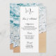 Ce modèle de carte de menu est affiché dans le papier mat de base avec une belle impression photo de plage avec script et texte standard en noir. Customisez les éléments du menu et modifiez-les en cliquant sur le bouton customiser modifier, recherchez à droite et trouvez les cases appropriées pour modifier vos informations. Je vous souhaite de bons voeux pour votre jour de mariage. Impression stock