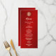 Cette carte de menu mariage chinois moderne comporte un double symbole de bonheur doré sur un arrière - plan rouge chatoyant. Avec des noms de mariée et de mariée personnalisés, la date du mariage et un texte de menu personnalisé dans un script manuscrit moderne.