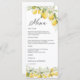 Menu de cérémonie Mariage Citrus vert citron. Cette invitation à la douche de mariage élégante et élégante présente de magnifiques agrumes verts citron peints à la main. Trouvez les articles correspondants dans la collection Florale Citrus Citrus Lemon and Greenery.