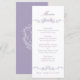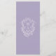 Menu de mariage élégant avec bordure de fleurs de lavande, blason floral et monogrammes au dos.