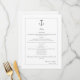 Ajoutez une touche de sophistication balnéaire à votre célébration avec ce menu blanc simple Ancres nautiques Mariage, avec un motif d'ancrage classique et un design côtier élégant. Parfait pour les réceptions sur le thème de la plage ou maritime, ce menu présente vos options de dîner de réception dans un agencement simple et propre. Élégant script et typographie moderne mettent en valeur chaque cours en complétant le style général de votre thème mariage côtier. Un détail élégant qui améliore le cadre de votre table et guide les clients à travers votre expérience culinaire soigneusement organisée.