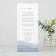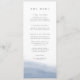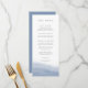 Ce menu mariage côtier chic est à l'image de notre collection Ebb Tide, avec un lave à l'aquarelle de couleur claire de bleu périvent poussiéreux sur le fond, avec votre texte personnalisé en lettres gris doux. Customisez avec jusqu'à quatre cours en utilisant les champs modèles.