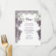 Un menu mariage à bordure florale lavande douce avec texte lavande assorti. Ce menu mariage fait partie d'un ensemble complet.