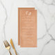 Ce menu mariage élégant est doté d'un arrière - plan d'aquarelle pêche et argile avec texte blanc. Il a de l'espace pour les initiales du couple à l'intérieur de deux branches dessinées à la main. C'est le menu idéal pour un mariage de automne.