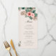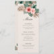Conception de menu mariage moderne avec des fleurs d'aquarelle rose poussiéreuse et des feuilles tropicaux sur un arrière - plan crème.