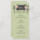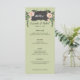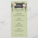 Ce menu de fleurs désertiques présente des fleurs roses et de la verdure de part et d'autre d'une boîte noire incurvée avec le mot "Menu". Tous les détails importants du menu mariage peuvent être modifiés. Les couleurs sont le vert, le rose, le blanc et le noir.