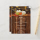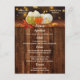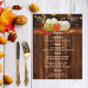 Un menu mariage de automne festif avec des citrouilles colorés et des feuilles d'automne sur un feu scintillant et arrière - plan de bois rustique.