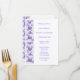 Menu mariage design de coeur floral. Customisez ce menu mariage couleur violet avec vos détails mariages. Si vous avez besoin d'aide pour customiser, veuillez nous contacter via le lien de cette page. Design de coeur floral couleur violet menu personnalisé mariage