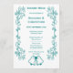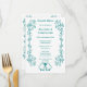 Mariage menu cloches design. Customisez ce menu de mariage de couleur turquoise avec vos détails de mariage. Si vous avez besoin d'aide pour vous customiser, contactez-nous via le lien de cette page. Conception de cloches de couleur turquoise menu mariage personnalisé