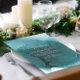 Un arrière - plan abstrait qui évoque l'encre liquide dans les nuances de turquoise profond à cyan et blanc est la toile de fond pour des textes manuscrits élégants et des dispositions design modernes dans les pièces de cette belle suite mariage. Le menu mariage ci-dessus est présenté et un modèle vous permet d'ajouter vos propres informations pertinentes. Recherchez ID762 pour voir toutes les pièces de coordination de cet ensemble.