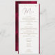 Menu mariage avec Bright burgundy chien fleurs roses sur l'arrière - plan lumineux bordo. Arrière - plan floral crammson clair. Eté Monochrome aquarelle peinture texturée langueur passionnée violet paysage floral Mariage Menu. Collection Passion Bourgogne.
