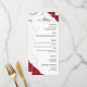 Flourish Red Roses Mariage Menu va élever votre réception avec cet élégant menu de roses rouges avec des accents floraux romantiques et des tourbillons de calligraphie gracieux. Parfait pour les mariages modernes, classiques ou classiques, cette carte de menu personnalisable met en valeur vos entrées, entrées, desserts et cocktails maison dans un style élégant. Imprimé sur un carton de haute qualité, il ajoute une touche polie et personnalisée à votre décor de table mariage. Ce menu à fleurs mariage s'associe à merveille avec les invitations, les programmes et la signalisation pour une suite de papeterie mariage coordonnée. Le style classique est parfait pour le printemps, l'été, l'automne ou l'hiver mariage !