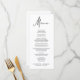 Menu chic pour votre réception de mariage, fête de fiançailles, dîner de répétition et autres célébrations avec "Menu" dans un script moderne, votre menu customisé dans une simple typographie, ainsi que vos prénoms et votre date d'événement dans une élégante typographie serif.