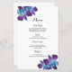 Menu de mariage Dendrobium orchidée violet et bleu turquoise. Un menu mariage simple qui présente une belle variété d'orchidées appelée dendrobium bleu. Il est turquoise / turquoise dans la couleur associée à violet et violet royal violet. Un grand choix de fleurs pour le thème de la couleur mariage paon.