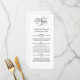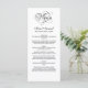 Un élégant menu minimaliste, noir et blanc, est proposé aux mariages.