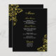 Une façon élégante de présenter votre menu mariage à tous vos invités. Une liste montrant le premier plat, le deuxième plat et les options de dessert. Le verso contient un message personnel de votre part, ainsi que vos noms et votre date de mariage. Un menu noir dramatique avec des tourbillons et des fleurs en fausse feuille d'or. Les champs modèles sont faciles à customiser avec vos choix de menu mariage, mais contactez-moi si vous avez besoin d'aide. Cela fait partie d'une collection de produits correspondants. J'ai sélectionné une police de script élégante et une police facile à lire pour le menu. Ils peuvent être changés, tout comme le texte et la couleur arrière - plan. Un design d'inspiration art déco classique avec des produits assortis disponibles dans mon magasin.
