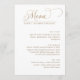 Elégante carte de menu blanc et or avec de beaux détails de calligraphie manuscrits et de typographie de bloc. Élégant, propre et sobre, élégant. Possibilité d'ajouter vos propres détails de menu. Si nécessaire, vous pouvez ajuster l'espace, la taille ou le style de texte en sélectionnant personnaliser plus loin. Retour avec le magnifique "le Mariage de" détail et ample espace pour vos noms et date mariage. REMARQUE : "Menu" et "Mariage" en fausse feuille, le reste du texte en teinte dorée. Une partie de notre "Elegant Calligraphy Minimalist Mariage Collection" avec une variété de produits de coordination disponibles. Visitez la collection entière à l'adresse suivante : https://www.zazzle.com/collections/elegant_calligraphy_minimalist_wedding_stationery-119497981924462546
