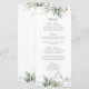 Menu Mariage élégant feuilles d'eucalyptus verdure or