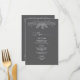 Laissez-vous tenter par cette invitation minimaliste et moderne, dans une atmosphère de tranquillité naturelle. La disposition, propre et centrée, est ornée d'un délicat dessin blanc de feuilles d'eucalyptus avec un arrière - plan gris simple, symbolisant l'amour et la croissance durables. Un design élégant et équilibré pour les couples qui apprécient les détails raffinés et d'inspiration nature. Ce menu mariage fait partie d'un ensemble complet.