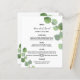 Personnalisez et ajoutez vos noms, votre date et le menu mariage. Arrière - plan blanc, orné de végétation d'eucalyptus, sprigs.