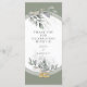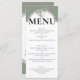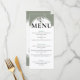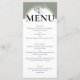 Magnifique menu mariage moderne dans le vert sauge et blanc avec feuilles eucalyptus (avant et arrière). Facile à mettre à jour - un côté contient vos options alimentaires, l'autre contient un message personnel et vos noms. Un design absolument agréable avec des anneaux mariages montrant sur le design avec vos noms.