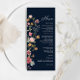 Menu de Mariage Fleur sauvage bleu marine. Cette invitation de mariage élégante et élégante présente de magnifiques Fleurs sauvages d'aquarelle peints à la main. Trouvez les articles correspondants dans la collection de rêves Fleurs sauvages bleu marine.