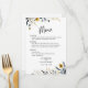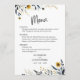 Menu Mariage Fleur sauvage Blue Yellow Watercolor