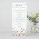 Ce design comporte une bordure de fleurs sauvages dynamiques dans les tons rouge, jaune, vert, turquoise et bleu. Parfait pour les mariages d'été décontractés.
