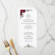 Menu pour la célébration mariage avec des noms de fleurs et calligraphie bordeaux & verdure.