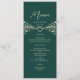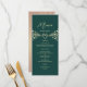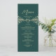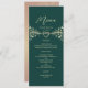 Elégante carte de menu vert émeraude et or mariage avec détails floraux délicats et un design romantique en corde. Idéal pour des réceptions officielles, des mariages d'automne ou d'hiver et des dîners de banquet sophistiqués. Personnalisez avec vos noms, dates et sélections de menu personnalisées pour créer une touche unique pour votre journée spéciale. Coordonner magnifiquement avec les invitations de mariage émeraude et or, les signes, et la papeterie de la même collection.