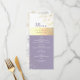 Vintage, botanique, rustique, calligraphie, moderne, élégant violet lavande poussiéreux menu mariage avec doré or et argenté dentelle florale.