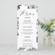 Ajoutez une touche d'élégance intemporelle à votre réception de mariage avec ce menu de mariage floraux noir et blanc. Doté d'un design sophistiqué, ce menu imprimable est parfait pour les mariages modernes, classiques et vintages. Facilement personnalisable pour correspondre à votre style mariage.