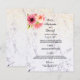 Une carte de menu mariage, élégante et romantique. Marbre blanc imprimé avec confetti d'or en arrière - plan. Fleurs de dahlia aquarellées en corail mauve, rose et vivant. Modèle pour vos noms, date et menu mariage.