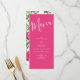 Notre menu mariage floral rose pastèque est fait pour correspondre à notre collection de Faire-part de mariage et décors floraux rose vif. Végétation luxuriante sur fuchsia et blanc brillant avec une belle police de caractères et de lettrage élégant. Parfait pour un mariage magenta d'été ou de jardin de printemps!