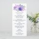 Aquarelle à fleurs mariage menu avec couleur de l'année 2018 ultra violet avec des tons violet et vert sauge. Les fleurs comprennent hydrangée, lavande, pivoines et roses.